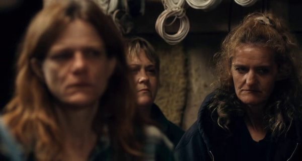 Mais la plus grande limite franchie par l’héroïne au cours du film, c’est bien entendu celle entre l’enfance et l’âge adulte. Or, il semble qu’au cinéma, ce passage s’accompagne fatalement d’une confrontation à la peur et à la violence. Comme la Mattie de True Grit, Ree effectue d’un même geste farouche une double trajectoire : celle qui fait d’elle une femme mais également celle qui la fait pénétrer dans l’univers du western, celle qui lui fait entrevoir la face à peine cachée de cette Amérique profonde qui, encore aujourd’hui, conserve de nombreuses marques de l’âge de sa conquête. L’épreuve à passer est bien la même. Et tandis que l’on met en pratique des leçons de survie certainement apprises à son plus jeune âge, on s’empresse également de les transmettre à ceux qu’on pourrait bien ne plus être en mesure de protéger, bientôt. Ainsi Ree apprend-elle aux enfants à tirer avec un fusil et guide-t-elle les mains de son jeune frère dans les viscères de l’écureuil qu’il vient de chasser : « Y a encore pas mal de peurs dont tu vas devoir te débarrasser » lui dit-elle. Car l’épreuve de force quotidienne peut en laisser certains sur le bas-côté. Au détour d’un dialogue apparemment anodin, on apprend que la mère de Ree a perdu la raison « en cherchant justement à s’éloigner de cette merde-là », des trafics de drogue de son mari, de la violence de leur entourage…