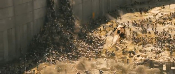 Quitte à évacuer d’emblée les quelques qualités du long-métrage, il faut admettre que le scénario montre toute son ingéniosité sur ce point. On se demandait bien ce qu’il resterait du roman dans un film semblant si différent. Et bien, il reste pas mal de chose. Certes, les fans se plaindront à foison sur le remplacement des zombies traînant des pieds contre des infectés plus véloces mais il y a un travail de réinvention non négligeable qui est entreprit. Le principe même de l’intrigue renvoie aux fondements du livre. Si celui-ci proposait de multiples témoignages, ils étaient accumulés par une seule et même personne voyageant à travers le monde pour obtenir les informations. Il apparaîtra, au fil de sa reconstitution des événements, que l’information est justement une clé déterminante de cette guerre (c’est son absence de traitement qui conduisit la situation jusqu’au point de non-retour). Il n’est donc pas complètement illogique pour le film de choisir comme personnage principal un investigateur de l’ONU enquêtant à travers la planète pour découvrir l’origine de la pandémie. Son parcours est jalonné d’aspects repris ouvertement du roman. Lorsqu’un général oblige le héros à reprendre du service car tout le monde se doit d’être utile dans la situation actuelle, c’est une citation à un chapitre où des personnes dont le métier n’a plus de raison d’être (avocat, comptable, manager…) doivent se reconvertir. De même, la menace de débarquer la famille du héros du bateau pour une zone terrestre moins sécurisée cite la logique du plan Redecker. Ce dernier consistait à concentrer les personnes les moins nécessaires dans des zones de survie qui serviront d’appât afin d’attirer les zombies loin de points stratégiques. En lien avec cela, on note d’ailleurs que le film n’hésite pas à employer des connotations politiques similaires à celles à l’œuvre dans le roman. C’est le cas par exemple de la chute de Jérusalem qui est plutôt culottée dans le genre.