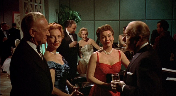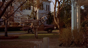 Le film est en revanche typiquement « sirkien » dans son utilisation expressive des couleurs. On évoquait déjà la couleur rouge de la robe que porte Cary au début du film et que son fils paraît désapprouver pour ce qu’elle peut avoir de provoquant et en ce qu’elle indique une sexualité potentiellement retrouvée par la mère. L’utilisation expressive et symbolique des couleurs a quelques moments forts dans le film, où c’est l’agencement global des teintes qui crée le sens et non plus seulement la couleur d’un élément isolé. Dans la première séquence, celle de la rencontre entre Cary et Ron, l’effet de contraste entre les couleurs d’automne de l’arbre jaune roux et du ciel bleu peut être interprété comme métaphore sur la différence d’âge des personnages. On notera également que, tout au long du film, le contraste entre les lieux de résidence des deux amants (on y reviendra) est renforcé par l’opposition entre les couleurs chaudes des habitats de Ron et ses amis d’un côté et les couleurs plus froides des intérieurs spacieux et sophistiqués du milieu bourgeois de l’autre. Le spectateur reconnaît immédiatement des décors conventionnels du cinéma hollywoodien, sociologiquement désignés, et le stéréotype visuel va jusqu’à rappeler une opposition ancienne, présente dans bien des contes populaires, entre chaumière et château…