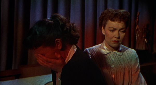 Un autre moment frappant par l’utilisation des couleurs est la scène située dans la chambre mansardée de Kay, la fille de Cary, qui désapprouve alors à son tour l’union de sa mère avec Ron. Un oeil de bœuf aux vitraux multicolores irise alors la pièce des couleurs de l’arc-en-ciel, la diversité des couleurs signifiant celle des points de vues mais également le désarroi de la mère :