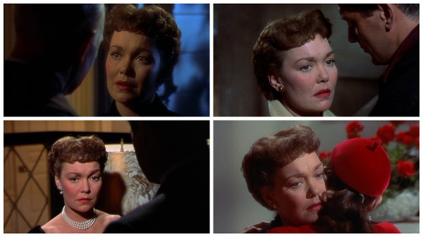 Jean-Loup Bourget recense par ailleurs ce qu’il appelle des « clichés-images » propres aux mélodrames hollywoodiens. Le plus incontournable de tous n’est autre qu’un type de plan caractéristique du genre : le plan rapproché sur les visages de femmes – en premier lieu, bien sûr, celui de l’héroïne. L’utilisation de gros plans sur un visage féminin ému est non seulement un ressort pathétique du mélodrame mais devient un « motif », une sorte de ponctuation dans le récit. Ce type de cadrage intervient dans Tout ce que le Ciel permet à chaque séquence impliquant Cary. On note d’ailleurs que, dans leurs scènes communes, Ron n’est souvent qu’un profil ombrageux et que c’est sur le visage de la femme que la caméra vient chercher l’émotivité, les traces visibles des pressions que subit le couple.