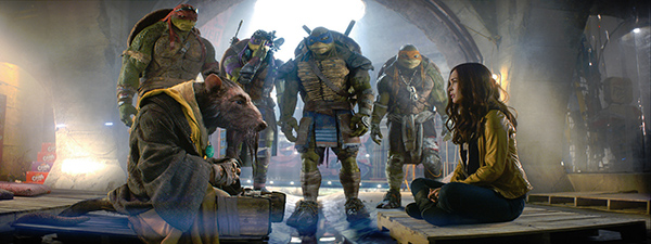 Avec le recul, on peut même juger la froideur de certaines réactions de fans plutôt inappropriée, surtout en ce qui concerne le look des tortues : grâce aux progrès techniques, les quatre justiciers retrouvent enfin un look crédible, primitif et extrêmement imposant, très éloigné de ces acteurs dissimulés dans des panoplies artificielles. Il en est de même pour Splinter, admirablement dessiné en figure de senseï vénérable tout comme dans TMNT, et surtout pour Shredder, ici doté d’un look de samouraï d’acier enfin sublimé et transcendé. Et n’oublions pas cette chère April O’Neil, qui trouve finalement en Megan Fox une très satisfaisante incarnation d’héroïne à la fois sexy et dynamique (même si, au départ, Jessica Biel et Elizabeth Olsen avaient été envisagées). Des personnages fidèles à leur incarnation originelle, et qui, enfin vecteurs d’un vrai relief iconique sur grand écran, donnent malgré tout la sensation d’avoir su rester les mêmes sur le fond : d’une bonne idée sur l’exploitation des pizzas (l’aliment préféré des Tortues devient ici un outil de torture utilisé par Splinter) aux blagues à deux balles de Michelangelo (toujours aussi amoureux d’April !) en passant par l’individualisme brutal de Raphaël (définitivement LA tortue la plus intéressante !) et un « Cowabunga ! » utilisé sans aucun excès, tout est là, honoré, respecté et modernisé à sa juste valeur.