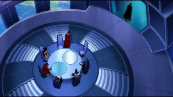 Par l’évolution particulière donnée aux protagonistes, la séquence finale de Justice League : Mortal se permettra d’inverser les rôles entre Batman et le reste de la ligue. Dans la forteresse de la solitude, nos super-héros se sont réunis afin de décider s’ils rejoindront ce qui va devenir l’officielle ligue de justice. Chacun donne son accord… sauf Batman, qui refuse. Il refuse non pas parce qu’il demeure ancré dans ses convictions qu’un tel groupe présente un danger potentiel, mais parce qu’il ne s’en considère pas digne. Architecte malgré lui d’une catastrophe mondiale, il aura été conduit à franchir la ligne en commettant un meurtre et à en payer les conséquences (son acte fera de Lord un pur esprit qui commencera par posséder et tuer Talia). Il accompagne sa décision en dévoilant son identité secrète avec un simple commentaire : « J’ai une faiblesse. Je suis humain ». Wonder Woman lui rétorque : « Non Bruce. C’est ta force. NOTRE force ». En accueillant Batman, la ligue marque l’acceptation de sa propre humanité. Aussi surpuissants soient-ils, ils ne sont pas pour autant infaillibles et accueillent désormais cette facette de leur personne. Elle devient le ciment de leur groupe. C’est soudés qu’ils se jettent face à leur nouvel ennemi dans une ultime image aussi jubilatoire et frustrante que pouvait l’être celle des Indestructibles.