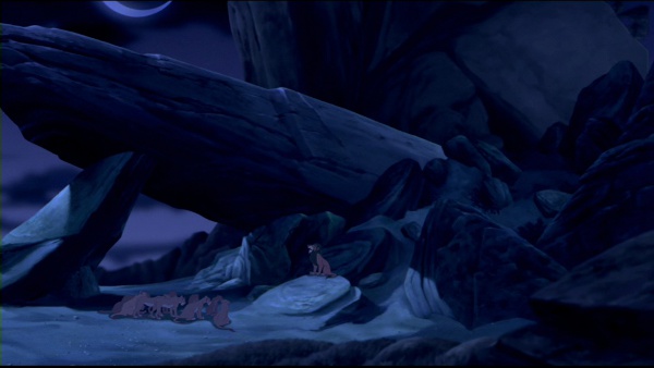 De manière assez prévisible, le choix du naturalisme déteint sur l’histoire. Lorsque la production du Roi De La Jungle est lancée (le titre changera lorsque les auteurs se rendront compte que ce surnom populaire est mensonger), Roger Allers partageait le poste de réalisateur avec George Scribner. Ce dernier désire apporter une vision véritablement documentaire. Un choix apparemment normal de la part du réalisateur d’Oliver & Compagnie qui avait décrit les bas fonds de New York dans tout leur misérabilisme. L’histoire est alors centrée autour d’un conflit entre les lions et des babouins. Selon Allers, l’ambiance était terriblement sérieuse et sanglante. C’était trop pour lui et probablement pour la hiérarchie supérieure. Scribner est donc débarqué et remplacé par Rob Minkoff avec ordre de ne pas se focaliser sur ce qui a été fait précédemment. Il s’agit donc de trouver une nouvelle histoire. La nouvelle orientation se fera là encore sous l’impulsion de Katzenberg. Suite à ce raté, il se lâche en réunion sur la conception qu’il a de l’histoire. Un animateur le reprend en déclarant qu’il est entrain de refaire Hamlet. Et Katzenberg s’exclamera que c’est exactement ça qu’il faut faire. Le film se construit alors une intrigue shakespearienne qui creuse un peu plus le fossé entre Le Roi Lion et Bambi. On peut même dire qu’il s’en désolidarise complètement. Dans Bambi, la nature était à la fois le sujet et l’histoire construisant par là une expérience particulièrement sensible. Malgré ses thématiques universelles et son contexte, Le Roi Lion opte pour un récit à la dynamique plus traditionnelle avec d’identifiables attributs manichéens.