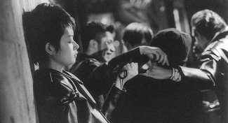 A première vue, Tsukamoto semble reconnaître sa dette au cinéma dépouillé de Leos Carax : un traitement de la photo en noir et blanc qui rappelle Boy Meets Girl, un montage alterné final entre deux travellings latéraux qui joue le clin d’œil à Mauvais Sang, une génération romantico-punk vivant dans la rue qui renvoie fatalement aux Amants du Pont-Neuf. A y regarder de plus près, la fibre de Tokyo Fist revient ici en force sous un autre angle, celui du clash entre les générations. Si les « anciens » – c’est-à-dire ceux qui ont vécu la guerre – ont pu vivre des sensations d’ordre organique avant de s’enfermer dans un confort bourgeois et d’y végéter sans fin, les jeunes sont ici stigmatisés comme paumés, désœuvrés, bagarreurs pour rien, inconscients de tout, dénués de la moindre perspective d’avenir, se limitant à mettre le feu à des clochards pour tuer le temps ou à voguer d’une mode à l’autre sans raison particulière. Seul un personnage féminin, en l’occurrence une jeune punkette, saura trouver in fine une échappatoire à cette impasse sociale. Tsukamoto oppose alors à cette jeunesse à la fois séduisante et vide un énième personnage de salaryman (qu’il interprète à nouveau) qui se redécouvre peu à peu homme primitif au travers de son fétichisme des armes à feu. La suite constituera là encore en une suite d’électrochocs visuels et thématiques : Tokyo visualisé en grand écart entre le sublime et le sordide comme le New York de Taxi Driver, montage de l’arme à feu sur fond d’un montage épileptique et quasi mental d’images de guerre, pulsion de mort reconfigurée en pulsion de vie (grande scène du corps frôlé par une rame de métro lancée à toute vitesse), arme à feu devenant l’extension d’une main en même qu’un moyen de lier la destruction à la création (le fait de détruire crée des sensations chez soi comme face à soi). Sa scène finale, qui signera la régénération de deux générations par la violence à laquelle elles ont été confrontées (bien que blessées, elles s’éloignent alors l’une de l’autre en courant toujours plus vite dans des directions opposées), est impossible à effacer de la mémoire. Sans doute s’agit-il de la plus belle scène jamais tournée par Tsukamoto.