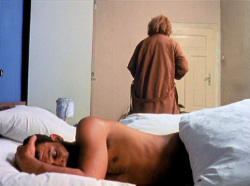 La dynamique mélodramatique de l’entrave y est double : dans la relation du couple à son entourage donc, mais également au sein même du couple. Fassbinder montre en effet une sorte de plaisir masochiste qu’il y a à être observé par les autres. La preuve en est que dès lors que les amants sont seuls entre quatre murs ou partent en vacances loin des autres (dans une ellipse qui laisse deviner, au vu du retour des personnages, que quelque chose s’est alors brisé entre eux), leur couple perd une force qui semblait donc ne pouvoir se construire que dans la crainte, dans l’adversité. Dès lors que celle-ci faiblit, l’humiliation (l’épisode où Emmi invite ses amies à boire le thé en présence d’Ali qu’elles stigmatisent) et l’exploitation (Ali demande une grosse somme d’argent à Emmi pour la perdre au jeu) viennent saper la relation. Pour Fassbinder, ce sont presque là des fatalités, qu’il met en avant par l’artificialité des tournants narratifs qu’autorise le genre mélodramatique.