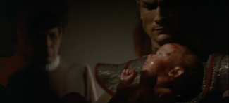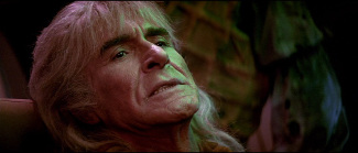 Débutant là où s’achevait La Colère De Khan, le troisième épisode va donc tenter l’impossible en ressuscitant le personnage décédé. Postulat idiot mais trouvant tout son sens par l’exploitation des bases thématiques précédemment posées. A La Recherche De Spock tourne ainsi autour de la frontière entre la vie et la mort, comment l’instabilité de la première peut conduire à la seconde mais aussi comment la seconde peut déboucher sur la première. L’enjeu du film concentre à lui seul ce thème. Il s’agit de la planète Genesis. Celle-ci est issue d’un projet scientifique consistant à créer une planète habitable à partir du néant. Cet élément était une sous-intrigue de La Colère De Khan : un vaisseau tombait par hasard sur Khan alors qu’il cherchait une planète entièrement désolée pour procéder à des tests. Car il s’avère que lancer le processus sur une planète contenant déjà la vie entraînerait sa destruction au profit de la nouvelle configuration. Si l’expérience Genesis apporte la vie, elle a donc également un pouvoir de mort. C’est d’ailleurs celui-ci que convoite un commandant klingon (Christopher Lloyd, aussi haut en couleur que Montalban). Si Starfleet y voie une ouverture vers de nouveaux mondes, les klingons y voient surtout une arme à récupérer par tous les moyens. La planète créée reflète ce paradoxe. Il s’agit d’un endroit fertile et exotique mais souffrant d’un vieillissement accéléré le conduisant prématurément à sa désintégration. La planète permet néanmoins de réanimer le corps de Spock (son esprit ayant, lui, été transféré dans le corps de McCoy à la fin du second film). En cherchant à le secourir pour permettre à son ami de renaître, Kirk devra procéder aux sacrifices qu’il se refusait jusqu’alors entre la destruction de l’Enterprise et la mort de son fils. L’obtention de la vie ne peut décemment pas s’obtenir sans une mort pour s’équilibrer.