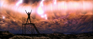Generations lorgne ainsi vers le cycle Genesis. Ses thématiques s’articulent autour de la fuite du temps et le devoir d’adapter son existence par rapport à celle-ci. L’angle d’attaque s’adapte parfaitement avec l’objectif de passation de pouvoir. La scène d’ouverture montre ainsi un capitaine Kirk participant à l’inauguration d’un nouvel Enterprise. Accompagné par Scotty et Chekov, le capitaine à la retraite ne masque pas son malaise. Alors qu’il se sent toujours prêt à partir à l’aventure, la jeunesse de l’équipage ne fait que le confronter à son âge. Quitte à enfoncer le clou, l’organisation du départ le force à rester figé dans sa légende et à n’être que la caricature de lui-même. Il ne cache pas sa joie lorsque l’incapacité de l’équipage à faire face à une catastrophe inattendue lui permet de rejouer au héros. La situation tourne toutefois mal et Kirk est aspiré par la perturbation à l’origine de l’incident. Ce phénomène s’avèrera être l’enjeu même de l’histoire. Nommé le Nexus, il s’agit d’un ruban d’énergie donnant accès à une dimension hors du temps où tous les rêves peuvent se réaliser. Pour y retourner, un scientifique campé par Malcolm McDowell est prêt à tout. Tant pis si cela implique de détruire plusieurs planètes au passage.