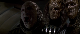 Au niveau de la chronologique de la production, Logan fut d’ailleurs embauché bien avant Baird. L’idée d’une vision flamboyante de Star Trek, elle serait donc à chercher de son côté. Si l’histoire sera signée par Rick Berman et l’acteur Brent Spiner, c’est bien Logan qui mettra sur pieds cette excitante aventure. Premier film de la saga à ne pas disposer de générique d’ouverture, le film entre sans politesse dans le vif de l’action. L’intégralité du sénat romulien est décimée. Ce coup d’état fut fomenté par un dénommé Shinzon qui prend le commandement de l’empire. Starfleet ordonne à Picard de le rencontrer afin de tirer au clair ses motivations. Picard aura une sérieuse surprise puisque Shinzon est une version plus jeune de lui-même. Il s’agit d’un clone créé pour infiltrer Starfleet mais devenu inutile lorsque la situation politique évolua. Cette confrontation concentre tout le caractère fascinant du film. D’un point de vue existentiel, il questionne le principe de notre identité. Qu’est-ce qui définit un individu ? Sa personnalité se caractérise-t-elle par son parcours ? Face à son clone, Picard se demande s’il aurait pris les mêmes décisions face aux situations rencontrées par Shinzon. Chacun étudie l’autre pour se comprendre soi-même… et ce qu’ils voient ne comble pas leurs attentes. En contrepoint de cette intrigue, Data est confronté aux mêmes interrogations lorsqu’il trouve un modèle d’androïde similaire à lui et auquel il tente de communiquer sa compréhension de l’humanité. Nemesis se crée ainsi une véritable profondeur thématique se télescopant dans un grand spectacle dont le dernier acte se constituera d’un affrontement spatial de longue haleine.
