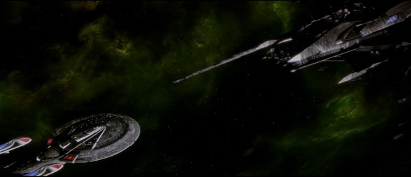 Le film ne convaincra toutefois que fort peu. Si la passion des thématiques est là, le déroulement du récit de Generations ne se montre pas aussi captivant. Entre l’ouverture et le final, l’intrigue prend son temps, fait preuve de choix invraisemblables et se perd même dans un dédale de personnage. Le plus dispensable restera la sous-intrigue impliquant Data. Androïde tentant de comprendre la nature humaine, ce dernier expérimente une puce électronique lui procurant des émotions. Non content d’être plus ou moins déconnecté du reste du récit, cela se résume surtout à montrer le personnage se comporter comme le dernier des demeurés la moitié du temps. En soit, ce segment fait ressortir la construction du long-métrage selon le principe d’un simple gros épisode de la série (Moore considère d’ailleurs que les films passés ne sont rien moins que ça). La réalisation appliquée mais simpliste du téléaste David Carson n’arrange pas les choses, même si le travail d’ILM (déjà revenu à l’œuvre sur Terre Inconnue) procure quelques belles visions entre la conception du Nexus ou le crash de l’Enterprise constituant le climax.