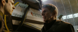 Des clins d’œil toutefois qui ne masquent guère une certaine refonte du spectacle. Si la thématique du destin est présente, celle-ci sert avant tout à nourrir un lien émotionnel envers les personnages et moins un discours métaphysique. C’est que le réalisateur J.J. Abrams avoue n’être pas un passionné de l’univers. Comble de l’hérésie, il souhaite injecter un peu de Star Wars (ce qui ressent à l’écoute de la musique chevaleresque de Michael Giacchino). Le long-métrage tout simplement nommé Star Trek fait ainsi la part belle à l’aventure avec moult scènes d’actions servies avec les irréprochables effets spéciaux d’ILM. N’en déplaise aux irréductibles qui imagine Roddenberry se retourner dans sa tombe, le spectacle séduit. Si on reprochera les tics vains d’Abrams à base de lens flare et de shakykam pour booster sa mise en scène, il offre un divertissement équilibrant avec soin grand spectacle et exploration de ses personnages. De Chris Pine en Kirk à Zachary Quinto en Spock en passant par Zoë Saldana en Uhura, les choix pertinents du casting pour incarner ces modèles rajeunis ne sont, en ce sens, pas dénués de fondement. Un reboot allégé donc mais qui a su conserver toute sa saveur en quelque sorte.
