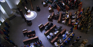 De l’avis général, Terre Inconnue figure parmi les meilleurs films de la franchise… et il l’est assurément par son parfait sens du spectacle. Les enjeux politiques arrivent à être amenés de manière pertinente et ludique. Meyer use ainsi de références littéraires savoureuses (le Undiscovered Country du titre original provient d’une pièce de Shakespeare et symbolise le futur) et emploie judicieusement des ingrédients comiques (le repas entre l’Enterprise et les klingons, monumental choc des cultures). Le trauma de Kirk s’intègre à bon escient dans le récit, tout comme la personnalité de Spock. Alors qu’il a enfin acquit une paix intérieure entre ses origines terriennes et vulcaines, celle-ci sera mit à rude épreuve lorsque les fantômes de la pure logique viendront l’agresser là où il ne les attend pas. Un tel travail d’orfèvre aurait mérité un écrin de luxe mais Paramount a peur que l’échec commercial de L’Ultime frontière n’ait nuit définitivement à l’image de la franchise. Le budget est donc minimisé avec notamment des décors et accessoires récupérés du tournage de La Nouvelle Génération. Cela n’empêche pas Meyer d’en tirer le meilleur mettant au point une mise en scène au style classique et ample avec quelques audaces au passage (le sang des klingons en apesanteur conçu par CGI).
