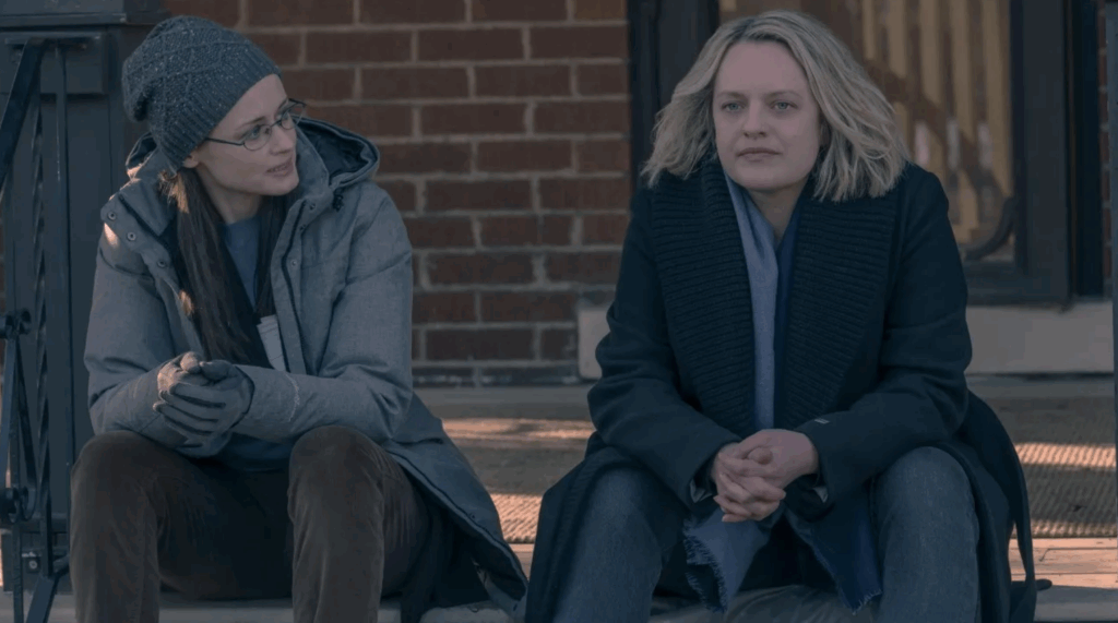 Certes, la lumière revient à Boston, la fraternité renaît — mais le cadre s’est rétréci au point que le peuple, à qui l’on prétend rendre la ville, n’existe plus à l’écran. Là où les saisons précédentes multipliaient les character-centric episodes (Tante Lydia, Emily, Janine…), la série finale se referme sur ses protagonistes principaux et oublie la collectivité qu’elle prétendait sauver. Quant aux États-Unis représentés par Mark, leur nature reste obscure. Sont-ils une démocratie renaissante ou une simple zone militaire ? On sait qu’ils ont trouvé refuge auprès du Canada, mais leur visage politique demeure hors champ — comme si The Handmaid’s Tale avait, elle aussi, perdu foi en la possibilité d’un futur collectif. June ne cherche même plus à passer du temps avec Holly, rebaptisée Nicole. Elle dit se battre pour elle, mais sans jamais s’interroger sur la transmission : quelles valeurs lui lèguera-t-elle, quelle identité, quelle éducation ? Et Dieu sait combien de temps prendra cette reconquête de Washington — des années, sans doute.