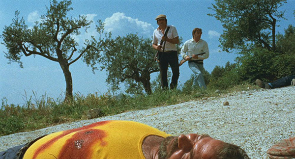 HC : Pour ce qui est de Quelli Che Contano d’Andrea Bianchi, c’était un choix en lien direct avec Laissez bronzer les cadavres. Notre producteur François Cognard nous parlait très souvent de ce film, et un jour, il nous l’a montré un peu par hasard. C’est vrai que, dans l’atmosphère qui se dégageait de ce film, il y avait ce mélange de western et de poliziottesco que l’on avait déjà senti dans le livre de Jean-Patrick Manchette & Jean-Pierre Bastid. Pour notre adaptation du livre, on a donc pu trouver dans ce film-là le dosage parfait de ces deux genres, aussi bien dans l’atmosphère que dans certaines scènes de…