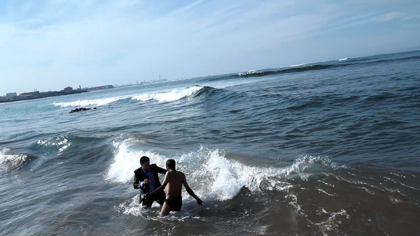 Je cherchais à chaque fois le gimmick qui permettrait que ça fonctionne : quand on court, on est dans des espaces un peu clos pour qu’on ait des repères spatiaux qui permettent de saisir qu’on est à l’envers, etc. Certains de ces partis-pris effrayaient un peu mon équipe, même si c’était moi qui tenais la caméra [Hicham Lasri est bien crédité comme cadreur du film, ndlr] : ce pouvait parfois être dangereux. Une anecdote à ce propos : quand on tournait ce passage où la caméra est volée et que l’acteur me suivait en courant et en criant « Au voleur ! », des clients assis au café d’à côté se sont levés et se sont mis à me courir après, l’un d’entre eux m’a même envoyé un verre dessus, qui heureusement s’est fracassé plus loin sur le sol ! (rires)