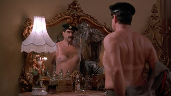 Hot Shots ! n’est pas un film des ZAZ. C’est mon film. A moi, Pat Proft ! Mon œuvre ! Les idées viennent toujours du genre de films dont s’inspire votre parodie. Et des films récents aussi, immédiatement reconnaissables par le public. Le fait d’avoir une énorme cheminée au sein du palace de Sadam, c’est la porte ouverte à toutes les blagues : les soufflets sont utilisés contre les joues de Sadam, les tisonniers deviennent des épées… Lloyd Bridges, dans le rôle du Président Benson, se balance à l’aide d’une corde comme Robin des Bois et arrive vers Saddam, mais évidemment, il le dépasse et finit dans la cheminée ! Lloyd Bridges, c’est l’homme le plus prédisposé aux accidents de toute la planète. Donc le fait de le voir tomber en plein dans le feu, c’est naturel. Avec ce genre de gag, on passe en un clin d’œil du drame à la folie pure. Et à ce passage précis du film, proche du dénouement, le public ne sort pas du film car tout cela a quand même du sens, cela fait sens. Parce que c’est typiquement l’humour de Hot Shots ! 2.