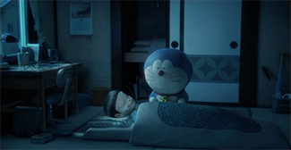 Michihiko Umezawa : L’international n’était pas dans ma vision. Au Japon, l’animation se résume encore beaucoup à l’animation en 2D, mais c’est la 3D qui fait l’actualité au niveau mondial. Du coup, nous avions naturellement plus de chances pour approcher l’international. Les films 2D étaient destinés aux enfants et à leurs parents et, si on veut cibler les adultes qui regardaient ces films 2D étant enfants, il fallait trouver un moyen pour les attirer. Imaginez que vous étiez jeune il y a 40 ans, et vous avez grandi avec Doraemon. Vous avez envie d’aller voir Stand by me Doraemon mais en 2D, vous auriez appréhendé le fait d’aller au cinéma. Par contre, la 3D est une nouveauté, c’est moderne, ce qui fait que ceux qui ont connu cet univers étant petits, ont envie de voir de quoi il en retourne. La 3D était intentionnelle dans cette optique. En fait, il y a sept histoires que l’on a combinées pour en faire un film, sept histoires fétiches pour les japonais. Beaucoup de japonais se rappellent de ces épisodes, lus dans le manga ou vus à la télévision, ils en sont nostalgiques, se souviennent de leur enfance.