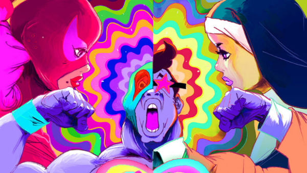 Premier bilan et non des moindres : les meilleurs films que nous avons vu sont des courts-métrages. Nous en avons parlé il y a quelques jours, Get a horse en fait partie. Le projet jusque là mystérieux de Disney aura su enthousiasmer une salle des Haras pleine à craquer par son inventivité et la surprise liée à sa découverte totale, puisque présenté pour la toute première fois à un public extérieur aux studios. Un enthousiasme qui n’aura malheureusement pas accompagné tous les courts-métrages découverts lors de ce festival. Comme souvent, il aura fallu supporter le calvaire de certaines œuvres tantôt autistes, tantôt prétentieuses dans la mesure où comme tout le monde le sait, un film de dix minutes ou moins ne doit rien raconter, se prendre impérativement au sérieux et, bien évidemment, être le plus laid possible. Parmi la sélection à laquelle nous avons assisté, ils ne sont donc que trois à nous avoir sorti de notre état comateux, dont celui pour lequel nous étions présents. Ainsi Kick-heart, dernier court-métrage en date de Masaaki « Mind game » Yuasa et dont la particularité aura été d’être financé par une campagne Kickstarter, se sera révélé à la hauteur de ce que nous attendions de lui. Première œuvre de la sélection à se dire que les couleurs, c’est quand même sympa, le court regorge d’idées visuelles forcément improbables et aura marqué les esprits par son humour, son rythme infernal et sa personnalité. Ça tombe bien, on n’en attendait pas moins. Moins délirants mais tout aussi drôles ou ambitieux, le hollandais History of pets et le canadien A girl named Elastika auront su élever le niveau de la séance. Une préférence pour le second, élaboré avec plus de dix mille photos pour de la stop motion de qualité à base… d’élastiques et de punaises.