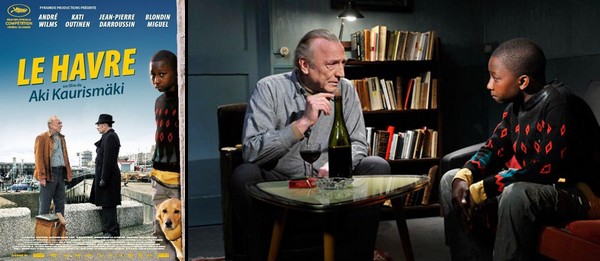 Le Havre est la meilleure illustration d’une tendance observée au Festival de Cannes 2011 : tandis que la Compétition Officielle accueille plusieurs débutants ou cinéastes encore peu reconnus, il semble que ce soient les vieux maîtres (Moretti, Cavalier, les Dardenne) qui parviennent à faire consensus, alors que leur statut « d’habitués de Cannes » leur vaut parfois les plus basses critiques. Ainsi le Finlandais Aki Kaurismäki repart-il avec le Prix de la critique internationale, quand bien même son nouveau film nous offre son menu habituel : « gueules » impassibles, compassion politique, théâtralisation revendiquée, amour du burlesque (Tati et Chaplin sont évoqués à travers quelques fulgurances comiques complètement décalées, Pierre Etaix fait un caméo) et intérieurs de bars décrépits éclairés avec amour. Mais il y a quelque chose de frais dans ce nouvel opus, certainement ce relatif optimisme qui surprend lorsque l’on a encore en tête la « trilogie de perdants » (Au loin s’en vont les Nuages, 1996, L’Homme sans Passé, 2002, Les Lumières du Faubourg, 2006), magnifique mais déprimée. Certainement, aussi, cette francophilie que l’on connaît à Kaurismäki depuis La Vie de Bohême (1991), où il dirigeait déjà André Wilms et Jean-Pierre Léaud) mais que celui-ci affirme ici plus que jamais. Le cinéaste mêle les traits stylistiques traditionnels de son propre cinéma à un problème politique français très actuel, celui de l’immigration clandestine, et s’entoure d’un superbe casting franco-finlandais pour nous livrer un conte modeste mais lumineux.