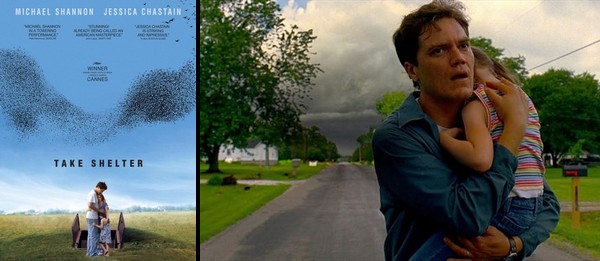 Dans une banlieue « cols-bleus » de l’Ohio, Curtis (Michael Shannon), un ouvrier en bâtiment solide et taciturne mène avec sa jolie femme Sam (Jessica Chastain) et leur fille sourde-muette Hannah (Tova Stewart) une existence tranquille et rangée, point de départ somme toute traditionnel des films catastrophes. Lorsque le protagoniste aperçoit une tornade à l’horizon, on s’attend à voir le film prendre cette direction. Mais les tornades de Curtis, comme cela nous est très vite révélé, ne sont que purs fantasmes de son esprit et vont de pair avec les cauchemars de plus en plus « vrais » qui hantent ses nuits (lorsque le chien de la famille le mord en rêve, son bras lui fait mal toute la journée). Tandis que les visions empirent, Curtis devient complètement obsédé par l’abri sous-terrain qu’il a construit depuis des années au fond du jardin de son pavillon et qu’il compte bien agrandir, en dépit du regard de plus en plus inquiet de son entourage. Un climat de menace s’installe progressivement, généré par ces visions de nuages orageux, d’éclairs et d’impressionnantes migrations d’oiseaux, souligné par le grondement des cordes orchestrées par David Wingo. Dès son deuxième long, après le remarqué Shotgun Stories (2008), Jeff Nichols bénéficie de moyens pour financer de beaux effets spéciaux qui donnent un souffle indéniable à ces séquences de tornades imminentes.
