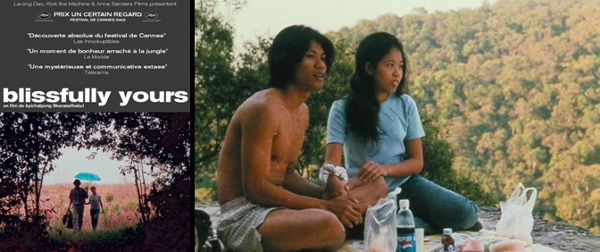 Lors de sa présentation cannoise en 2002, Blissfully yours fut un choc total. Pas seulement la révélation d’un cinéaste surdoué, tellement éloigné des carcans habituels, mais surtout la mise en lumière d’un style mêlant réalisme et onirisme, d’où émanaient des effets qui frappaient l’esprit, qu’il s’agisse de ce générique de début impromptu (surgissant au bout de trois quarts d’heure de film !), de ces pictogrammes graphiques que le cinéaste a placé de façon étrange sur de nombreuses scènes du film, ou encore le naturalisme dont la deuxième partie se faisait l’écho sensoriel. Qui plus est, entre une balade antonionienne et un dérivé tropical d’Une partie de campagne de Renoir, difficile de savoir où placer Blissfully yours. Inutile de chercher, le film est un peu tout ça à la fois, et peu importe. Mais ce qui a pu frapper le plus dans ce film inattendu, c’est la confusion esthétique et thématique qu’il a su mettre en place : avait-on affaire à un docu-fiction, à un bloc de réalité filmée, à un vague concept arty ou à une ballade sensuelle filmée sous opium ?