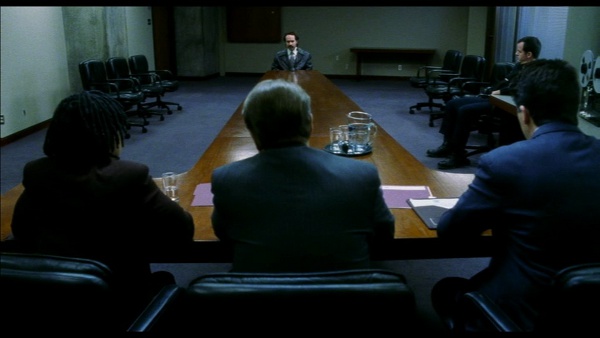 Sans dévoiler les tenants et aboutissants d’une intrigue retorse, il faut toutefois noter que le pitch succinctement exposé comprend un certain nombre d’erreurs que partageront les personnages. Suite à plusieurs problèmes dans la compréhension des évènements (ça n’est pas innocent si le personnage central est un illusionniste), des fausses données vont se répandre et dicter les agissements des personnages. L’absence de coordination et l’opposition des forces en présence proviennent directement d’une incapacité à communiquer les bonnes informations, laissant le tout tomber dans la catastrophe la plus absolue. De cette situation, Carnahan offre un développement bigger & louder de Narc. Là encore, il se concentre sur un point de vue humain. Sauf que sa précédente réalisation se reposait principalement sur deux personnages, alors qu’il doit avec Mi$e A Prix gérer une large galerie de caractères. Les archétypes pullulent (duo d’agents du FBI, garde du corps, tueuses lesbiennes, expert en maquillages, fratrie nazie…) mais prennent toute leur densité lorsqu’ils sont lâchés dans cette architecture du chaos. Certains s’en sortiront (les plus professionnels sortiront du bâtiment avec une facilité déconcertante), d’autres mourront (la tueuse acceptant son sort avec un semblant de satisfaction). Certains trouveront la paix dans le désordre (un couple d’amoureux se formera), d’autres verront juste leurs valeurs morales voler en éclat (la fin est un summum de désespoir). Mi$e A Prix transporte ainsi par tout un éventail d’émotions. Le montage a là encore son importance significative arrivant à jongler entre toutes ces saveurs et à les relier avec une aisance quasi-arrogante. Toujours aussi accomplit dans la représentation cinématographique des émotions de ses personnages (voir par exemple le jeu avec les miroirs et les lentilles lorsque Buddy Israel se comprend piégé de toute part), Mi$e A Prix constitue probablement le plus belle ouvrage de Carnahan à ce jour.