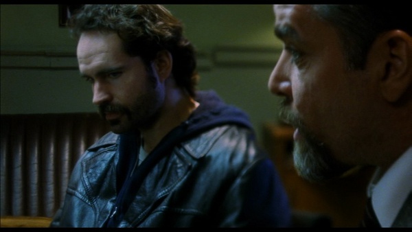 L’histoire de Narc poursuit Carnahan depuis plusieurs années déjà. Celle-ci prend pour base un documentaire d’Errol Morris nommé Le Dossier Adams relatant l’enquête sur l’assassinat d’un policier. Pendant ses études universitaires, Carnahan en aura déjà tiré un court-métrage nommé Gunpoint. Comme tous l’auront remarqué à sa sortie, le film s’inspire allègrement du cinéma des années 70 et tout particulièrement de celui de William Friedkin. Il n’est guère étonnant que ce dernier dresse des éloges au long-métrage puisque Carnahan s’aventure dans son champ de prédilection : l’ambiguité. Comme il le résume dans le making of, Narc parle de la relativité de la morale. Les policiers sont par définition les gardiens de l’ordre et de la morale. Ils traversent pourtant un monde chaotique dont ils doivent régulièrement adopter les règles pour arracher le mal à la racine. En ce sens, comment réussir à savoir où commence le bien et où finit le mal lorsqu’on se retrouve perpétuellement à jouer sur tous les tableaux ? Comment ne pas se laisser corrompre par un monde délabré qu’il semble impossible de redresser ? Comment ne pas finir par être convaincu que tous les moyens sont bons pour préserver le peu d’innocence de ce monde ? Ces interrogations ne sont pas nouvelles et une partie du public ne manquera pas de critiquer l’héritage pesant de Friedkin. Toutefois, Carnahan offre là un travail au niveau du graphisme on ne peut plus personnel. Si la caméra à l’épaule (formidable intro coup de poing) et les prises sur le vif (Patric interrogera des vrais passants dans la rue) sont courantes, les choix esthétiques de Carnahan sont plus que pertinents. Ainsi transmet-il l’idée de forces en présence par l’utilisation de différents jeux de photographies. Les extérieurs sont des rues crades baignant dans une bleutée craquelante alors que les bureaux de la police sont aseptisés et que le foyer des personnages principaux comporte les seules tonalités chaudes.