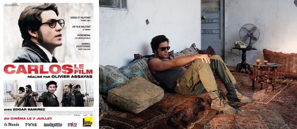 Le métrage débute par l’assassinat, à Paris, de Mohamed Boudia, chef en Europe du FPLP (Front Populaire de Libération de la Palestine). Les représailles du Front contre Israël seront confiées à Ilich Ramirez Sanchez, dit « Carlos le Chacal ». Autrement dit, Carlos commence là où les héros du Munich de Steven Spielberg (2006), agents secrets envoyés par Israël pour venger les attentats des Jeux olympiques de Munich, perdaient leur innocence en entamant leur série d’assassinats avec celui de Boudia. Le souvenir de Munich, auquel il faut ajouter celui de La Bande à Baader d’Uli Edel (2008), irrigue le visionnage de Carlos puisque les évènements politiques dont traitent ces films se recoupent à de nombreuses reprises, de même que deux femmes terroristes des Cellules révolutionnaires, reliées à la Fraction Armée Rouge (« la Bande à Baader »), rejoignent la même organisation terroriste que Carlos, le Bras Armé de la Révolution Arabe, après l’avoir rencontré dans les camps d’entraînement du FPLP en Jordanie. Mais, sans aucun doute possible, le film d’Olivier Assayas surpasse ceux de Spielberg et d’Edel, de même que celui de Richet sur Mesrine et celui de Soderbergh sur Che Guevara, autres hors-la-loi iconiques contemporains de Carlos. Assayas trouve ici ce qu’il fallait pour porter son goût de la fièvre, du vertige, de la spirale entrevu dans Demonlover ou Boarding Gate à un niveau nettement supérieur. Carlos est un personnage de cinéma, un homme d’action pris dans le vertige de son propre personnage, de son propre délire idéologique.