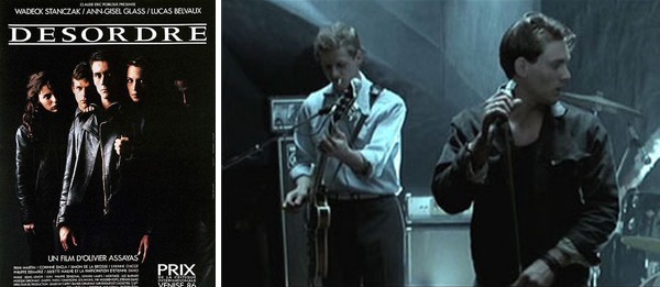 Lorsqu’Olivier Assayas parle de sa jeunesse comme il l’a fait à la cinémathèque de Berlin en présentant son film semi-autobiographique L’Eau froide (1994), il évoque longuement ce qui, pour lui, saisissait alors plus que toute autre chose l’esprit d’une époque et les sentiments que sa jeune génération ne parvenait pas toujours à exprimer avec des mots : la musique. Si le fils du scénariste Jacques Rémy se passionne très vite pour le cinéma – un univers dans lequel il a grandi -, la musique occupera ainsi une place de premier ordre dans son œuvre. Il est peu étonnant que son premier essai à la réalisation, Rectangle (1980), prenne la forme de deux clips pour des morceaux électro-rock de Jacno. Avec Désordre, son premier long-métrage, le milieu de la musique punk-rock sert carrément de cadre à l’intrigue. Mais paradoxalement, la musique ne paraît que peu évoquée pour elle-même, si ce n’est comme réminiscence d’un temps pas si lointain où l’on s’épanouissait vraiment. Les personnages interprètent moins la musique qu’ils en parlent en termes d’achat et de vente, d’échec et de célébrité, comme si ces jeunes musiciens s’étaient laissés emportés loin de leur passion première par l’air d’un temps nouveau où les tractations sont plus importantes que le reste. De fait, en braquant un magasin de musique et en en tuant par accident le gardien dans la scène d’ouverture du film, Yvan (Wadeck Stanczak), Anne (Ann-Gisel Glass) et Henri (Lucas Belvaux) laissent symboliquement leur insouciante et leur fougue gésir au côté du cadavre. Plus tard, leurs répétitions et leurs représentations seront moins filmées pour elles-mêmes (comme dans Rectangle ou, bien plus tard, Clean) que comme des interactions qui précipitent leur chute…