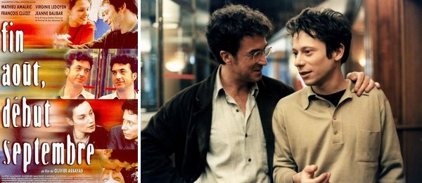 Après une période un peu particulière où son cinéma commence à s’internationaliser ne serait-ce que par les influences diverses d’Irma Vep ou ses rencontres avec Maggie Cheung qu’il épouse en 1998 et le cinéaste Hou Hsiao-Hsien, devenu son ami et auquel il consacre un documentaire pour la collection « Cinéastes de notre temps », Assayas revient à un cinéma d’auteur intimiste. Pour aller plus loin dans la caractérisation voire dans la caricature, disons que Fin Août, Début Septembre est un « ciné-roman » à la française, qui peint les problèmes de cœur et d’égo de personnages issus d’un certain milieu intellectuel. On pense au Desplechin de Comment je me suis disputé… (ma Vie sexuelle) (1996), qui suivait avec une apparente liberté formelle le quotidien d’un trentenaire en pleine crise existentielle. Mais c’est davantage la présence, ici aussi, du couple (réel et fictif) Mathieu Amalric/Jeanne Balibar qui nous y ramène, car le film d’Assayas est moins foisonnant et mine de rien plus uniforme dans sa mise en scène et ses parti-pris narratifs que celui de Desplechin. Au centre du cercle d’amis trentenaires parisiens que l’on suit, il y a Adrien (François Cluzet), écrivain dont la carrière stagne, et Gabriel (Amalric), qui travaille dans le monde de l’édition. Les deux hommes peinent à y voir clair autant dans leur relation d’amitié que dans celles qu’ils ont avec les femmes. Un temps, la mise en scène ne nous paraît non plus au service de l’expression d’un état émotionnel des personnages, comme elle sait si souvent l’être chez Assayas, mais plutôt à celui d’une certaine « rigueur dans le désordre » : le cinéaste semble s’appliquer à avoir l’air frénétique, comme pour coller avec les canons d’un genre tacitement établi dans le paysage cinématographique français. Cela donne des aberrations telles que ces mouvements de caméra incessants qui, pendant une conversation, cadrent la boisson que le serveur amène à l’un des personnages, etc.