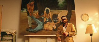 La manière qu’a Wes Anderson d’accumuler les données par la pure mise en scène méritera que l’on s’y attarde en temps voulu. Si l’on s’en tient, à ce stade, à la seule convocation d’autres arts dans ses films, il nous faut évoquer les éléments picturaux dont il charge inlassablement ceux-ci : il y a, par exemple, ce portrait de Churchill qui orne l’un des murs du directeur de Rushmore, où le regard perçant du Premier Ministre britannique semblerait presque moquer la futilité des conversations entre l’élève et son supérieur ; ou encore cette immense fresque baroque qui sert de toile de fond aux premiers éléments du générique de La Vie aquatique et participe ainsi d’emblée au côté faussement grandiloquent de l’ensemble du film. Mais ce sont surtout les créations farfelues des personnages qui enrichissent considérablement les univers des films d’Anderson et en font le charme bricoleur : ces maquettes que les élèves de Rushmore font en classe de sciences, la pièce de théâtre que Max Fischer met en scène vers la fin du film (une love-story entre une Vietcong et un soldat américain pendant la guerre du Vietnam), les fantaisies théâtrales de Margot Tenenbaum et celles, picturales, de Richie Tenenbaum, les documentaires ou les romans d’aventures de Steve Zissou, etc.