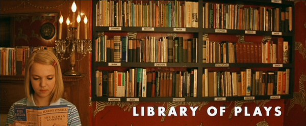 Dans Fantastic Mr. Fox et La Famille Tenenbaum, c’est la couverture usée d’un livre emprunté dans une bibliothèque municipale (on le sait à la tranche numérotée que l’on aperçoit) que l’on découvre la première : il s’agit bien sûr, pour le premier, d’une citation nécessaire du roman originel de Roald Dahl. Quant au cas Tenenbaum, le livre en question est un récit de la saga familiale que s’apprête à mettre en scène Anderson en revenant régulièrement au livre et à ses chapitres : un moyen de « sacraliser » en quelque sorte ses personnages – on y reviendra sur le plan de la mise en scène –, de renforcer le statut d’êtres exceptionnels qu’ils ont déjà par leurs aptitudes, les trois enfants Tenenbaum étant des surdoués. En montrant à de nombreuses reprises au cours du métrage d’autres livres, écrits par tel personnage ou tel autre, Anderson ne livre pas seulement sa vision de New York, idéalisé comme ville de culture par excellence, dont le moindre habitant serait un écrivain en puissance (c’est ce qui le faisait rêver, lui, le jeune Texan d’Austin toujours plongé dans ses livres) ; il plante le plus profondément possible son cadre narratif, cherchant à créer de toute pièce une autre réalité avec ses repères littéraires propres.