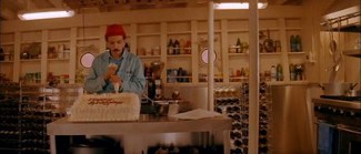 L’utilisation de la musique dénote donc une conscience peu répandue de l’impact émotionnel de celle-ci mais également un grand sens du rythme, comme l’explique Anderson lui-même : « Si la chanson occupe une place importante dans le film, j’aime l’écouter très fort pendant le tournage – même si ce n’est qu’un court extrait. Je minute tout à la seconde près en fonction de la musique. Je me souviens notamment de Rushmore : Jason Schwartzman avait onze secondes pour marcher d’un point à un autre, puis cinq secondes pour monter l’escalier en suivant la mélodie. » (source). Si la tentative de travailler ce plan-là de la forme du film n’était qu’à moitié fructueuse sur Bottle Rocket (cf. cette scène d’entraînement de football au montage très rapide et à la musique rock, peu éloignée des canons de la comédie américaine grand public que l’on connaît aujourd’hui), Anderson trouve sa voie dès Rushmore et aboutit, avec La Famille Tenenbaum, à des monuments tels que cette minute (montre en main) qui dévoile au spectateur et aux personnages de Bill Murray et de Luke Wilson le passé secret de Margot Tenenbaum (Gwyneth Paltrow). En un temps extrêmement restreint, Anderson offre un concentré jouissif de son univers et nous fait réaliser plus que jamais que celui-ci est avant tout pictural : pas besoin de dialogues explicatifs, seulement de l’entraînant « Judy is a Punk » des Ramones et d’indications écrites à même l’image en police Futura pour faire son effet (notons au passage que l’on aperçoit ici un Gypsy Cab et un marin flanqué d’un bonnet rouge, qui annonce La Vie aquatique :
