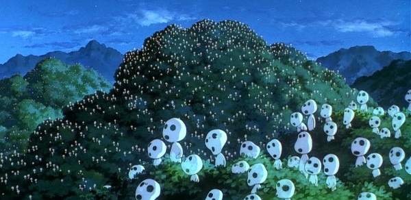 En définitive, si l’on veut un peu schématiser, Miyazaki ne force jamais le trait parce qu’il recherche la pureté, celle des êtres et celle des entités : dans ce film comme dans tous les autres, son refus de la naïveté et du manichéisme s’exprime par la transgression des clichés et des attentes, par la réunification des forces (celles qui s’opposent dans le récit, et celles qui se confrontent dans un même plan de cinéma). Si l’on voulait sortir d’autres exemples, il y aurait fort à dire : le soin de clarifier les motivations de chaque personnage potentiellement négatif, la précision minutieuse apporté aux personnages féminins (dans les forges, les rapports entre les deux sexes sont plus complexes que prévu) ainsi qu’aux seconds rôles les plus anodins, le parallélisme psychologique entre certains personnages (dans leurs voix et leurs attitudes respectives, Dame Eboshi et la louve Moro se ressemblent énormément), l’attention à donner la faculté à transformer une incarnation de pureté en symbole de terreur (et vice versa), l’équilibre harmonieux entre les couleurs et les textures, la simplicité élémentaire du dessin et des images, et surtout, le désir de faire passer le spectateur par tous les états possibles, tout comme son héros découvre avec stupeur et émerveillement les caractéristiques du monde qu’il investit.