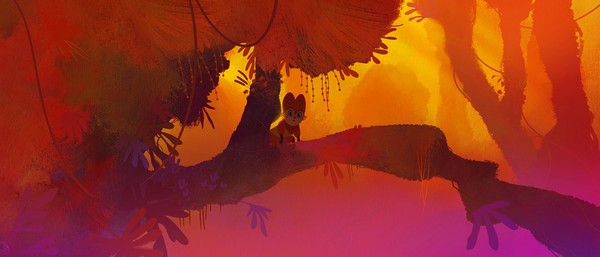 Le WIP de Perlimps annonce quant à lui une utilisation totalement différente de la couleur. C’est ce qui ressort de manière évidente des premières images du nouveau film d’Alê Abreu, couronné du cristal du long-métrage en 2014 pour Le Garçon Et Le Monde. Développé depuis sept ans, Perlimps va nous faire pénétrer dans une forêt enchantée avec l’ambition de créer un monde inconnu et de le faire ressentir au spectateur. Cela donne un film s’annonçant multicolore, mettant à contribution l’intégralité du spectre lumineux sans craindre de partir dans les extrêmes. Pour concrétiser cet aspect, Abreu use d’une technique de frottis de couleurs. Donnant l’ambiance recherchée, des coups de pinceaux abstraits sont scannés puis retouchés numériquement pour faire émerger le décor proprement dit. Celui-ci arrive ainsi à se construire en conservant une forme de spontanéité idéale pour une illustration de la nature. C’est la même chose au niveau de l’animation. Se chargeant lui-même des deux personnages principaux, Abreu veut s’assurer de conserver les lignes de force qui donne toute leur énergie au mouvement. Bien que cumulant plusieurs postes artistiques, le réalisateur travaille avec une équipe plus importante que sur Le Garçon et Le Monde (une quinzaine de personne pour les décors et l’animation). Il n’en conserve pas moins la même philosophie entre contrôle par son investissement dans les différentes étapes et souplesse en considérant que le travail définit la méthode et non l’inverse. La production trouvera même un aspect bénéfique dans la crise sanitaire. Situé à plus de trois cents kilomètres de Sao Paulo, le studio subissait des restrictions par son côté isolé. Or le travail à distance a permis de mettre à contribution des artistes éparpillés à travers le Brésil. Accompagné d’une musique qui mêlera électronique et bruitages corporels, Perlimps promet une splendide expérience. Cela fait accueillir sereinement une histoire qui, bien que nourrie des souvenirs d’enfance d’Abreu, s’annonce comme une aventure traditionnelle. Le thème de « l’union fait la force » sera au cœur du récit à travers le parcours d’enfants-animaux appartenant à deux mondes différents (l’un technologique, l’autre mythologique). On attend de voir le résultat prévu pour 2022.
