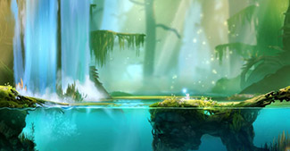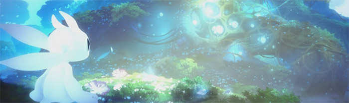 On aura tôt fait de réduire Ori and the blind forest à la petite claque visuelle qu’il nous met pendant un peu moins d’une dizaine d’heures. Poétique et d’une beauté absolue, le titre est en effet de ceux que d’aucuns limiteraient volontiers à une direction artistique confinant au sublime dans ses meilleurs moments. Au pire éblouissant, le jeu bénéficie à plein d’une durée de développement de près de quatre ans, autant que des multiples horizons culturels de son équipe, composée de créateurs venant des quatre coins du monde. Si l’on fait fi de rares ralentissements, le moteur Unity fait des merveilles – d’autant que le jeu ne comporte pas le moindre temps de chargement – et offre à son nom une teneur symbolique imparable à l’aune d’un projet d’une rare richesse. On pourrait d’ailleurs s’amuser à recenser les diverses influences d’un jeu se voulant autant de l’héritage de Miyazaki (les forêts de Princesse Mononoké, Naru évoque un croisement entre Totoro et le Kaonashi du Voyage de Chihiro), Disney (Le roi Lion est cité lors d’un plan, Ori fait penser à Stitch), Le Seigneur des Anneaux, Avatar ou autres Secret of Mana ; comme il est possible de croiser quelques easter-eggs placés discrètement ici et là (et citant directement Mario ou Zelda).