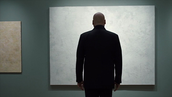 Grâce à ces deux personnages, la série navigue hors des champs manichéens. Il n’y a jamais d’hommes foncièrement bons ou mauvais. Il n’y a que des êtres meurtris en quête d’une hypothétique paix par des moyens qui sont tout autant flous. Ainsi en est-il de Fisk qui cherche le réconfort dans des tableaux composés de nuances de blanc. Une attirance pour une pureté rejetant l’uniformité qui se révèlera un écho au meurtre de son père violent par sa mère. Que faut-il faire pour réaliser ses idéaux, pour parvenir à les faire triompher sans les rendre néfastes ? La première saison de Daredevil explore tout ce difficile processus et profite au maximum des possibilités de son média pour cela. La série séduit dès ses premières minutes en instaurant un rythme posé et laissant respirer ses protagonistes. L’introduction dans un confessionnal de Matt Murdock n’hésite pas à durer en longueur. Cet épanchement amène à mieux cerner et surtout ressentir ce qui anime Murdock. En communiquant son admiration pour son père et ses valeurs, il admet les contradictions de ce boxeur acoquiné avec la pègre et sa fascination pour la violence générée par celui-ci sur le ring. Ce long aveu rend justice au conflit intérieur du personnage, appuyant son engagement irrévocable dans sa mission de vigilante et la connaissance de son ambiguïté (il réclame le pardon pour ce qu’il va entreprendre). Cependant, cette qualité aura tendance à se retourner contre la série. Cet étirement du temps virera par moment aux bavardages ostentatoires et entraînera de graves cassures dans le rythme. Ce qui se ressent tout particulièrement sur la saison 2 dont l’ambition est de multiplier tout ce que la première saison proposait…