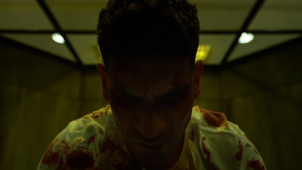 Dans la saison 2, on se retrouve avec des scènes d’action encore plus imposantes (notamment un affrontement en plan-séquence faisant le grand écart entre Old Boy et Quand Passent Les Cigognes) coincées entre d’interminables tunnels de dialogue. La série devient déséquilibrée et gâche ainsi certains effets. C’est le cas avec le Punisher (Jon Bernthal à la gueule prête à l’emploi). Vétéran dont la famille a péri lors d’un règlement de compte entre gangs, Frank Castle n’est pas censé être le genre de personnage à palabrer. Loin d’être un justicier, il est un professionnel uniquement alimenté par la colère et la vengeance. Ce qu’une de ses premières scènes chez un prêteur-sur-gage croque parfaitement. Avec une économie de geste et de parole, il impose sa volonté à son interlocuteur pour obtenir ce qu’il souhaite et il ne lui faut qu’une seconde pour se retourner avec violence contre lui lorsqu’il divulgue ses déviances. Voir donc un être si brut pérorer avec Daredevil sur des questions éthiques amoindrie son envergure. Cela enlève également une part de sa force au monologue qu’il fera plus tard où il dévoile les restes de son humanité. Un passage qui aurait justement été plus marquant s’il était le seul où Castle en vient à se confier.