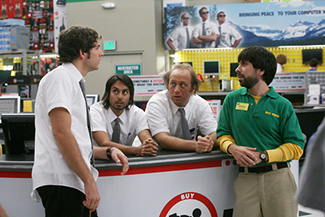 Conséquence directe d’un univers d’espionnage qui semble paradoxalement se rétrécir à mesure qu’on tente de l’élargir, l’exploration des ficelles de la galaxie geek subit elle aussi le même revers au fur et à mesure des épisodes. Sans doute parce que Chuck, sous couvert d’une tentative de chambouler le réel par les assauts d’une génération autant marquée par les posters de Tron que par le bestiaire de Star Wars, fonce tête baissée dans une caricature à la sauce The Big Bang Theory. Soit une vision du monde où le geek n’est jamais à l’aise avec les filles, roule des mécaniques sur les us et coutumes de telle ou telle figure héroïque pour se sortir d’une situation délicate (et ce juste avant de se prendre une branlée, bien sûr…), s’éclate à citer Karate Kid dès que possible ou à rejouer l’arène de Mad Max 3 dans un cagibi, case un dialogue cryptique en référence à une réplique issue d’un film célèbre (avis aux amateurs : il y en a au moins un par épisode !), et enfin, sonnez les trompettes, ne trouvera le moyen de se responsabiliser qu’au travers du néo-libéralisme et de l’espoir d’une vie à deux. Ce que reflète à merveille le parcours du personnage de Morgan (Joshua Gomez), passé de benêt paresseux à employé confirmé, tandis que le tandem Jeff/Lester, véritable Double Cheese d’inconsistance glauque en roue libre, ne cesse de nous donner envie de jeter les coffrets DVD de la série à la poubelle. Face à cela, à moins d’adhérer à cette vision régressive grâce à laquelle les « nerds » de Clerks passent presque pour des diplômés de la Sorbonne, difficile de se contenter de quelques plans d’une héroïne en sous-vêtements et d’une poignée de caméos censés faire bander les geeks (oui, c’est supra-cool d’avoir Linda Hamilton et Scott Bakula comme parents espions, mais bon…).